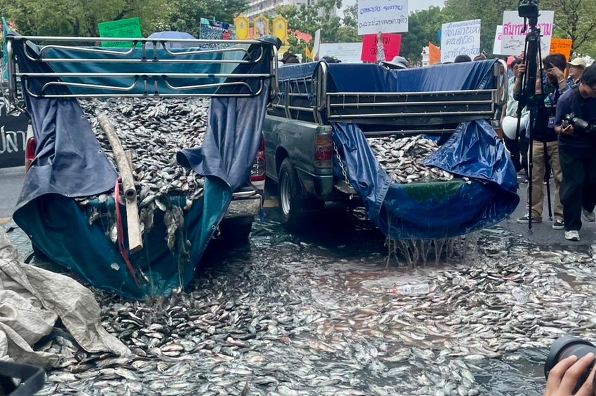 ม็อบปลาหมอคางดำ 19 จังหวัด บุกทำเนียบฯ ร้อง นายกฯ แก้ปัญหาปลาหมอระบาดทำลายระบบนิเวศ