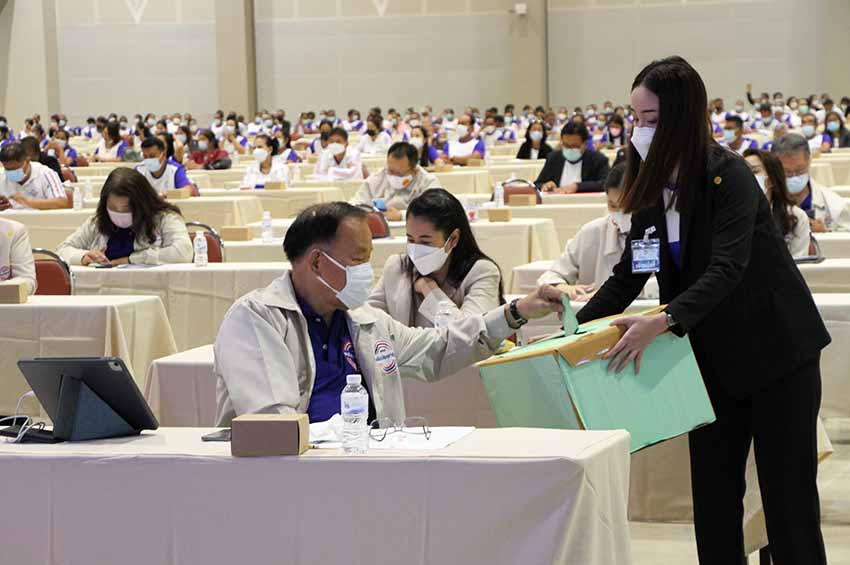 2.ร.อ.ธรรมนัส พรหมเผ่า เป็นเลขาธิการพรรค บัตรดี 556 คะแนน บัตรเสีย 14 คะแนน ไม่ลงคะแนน 23 คะแนน