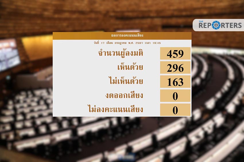 ผู้สื่อข่าวรายงานภายหลังการประชุมสภาผู้แทนราษฎร เพื่อพิจารณาร่าง พ.ร.บ. งบประมาณรายจ่ายเพิ่มเติมประจำปีงบประมาณ พ.ศ.2567 พ.ศ…. วงเงิน 1.22 แสนล้านบาท ที่ ครม.เป็นผู้เสนอ เพื่อใช้ในโครงการเติมเงินหมื่นบาทผ่านดิจิทัลวอลเล็ต เมื่อวันที่ 17 ก.ค.ที่ผ่านมา ซึ่งสภาฯ ลงมติรับหลักการร่าง พ.ร.บ.ฉบับดังกล่าว พบว่ามีจำนวนผู้เข้าร่วมประชุม 461 เสียง เห็นด้วย 297 เสียง ไม่เห็นด้วย 164 เสียง งดออกเสียงและไม่ลงคะแนน 0 เสียง