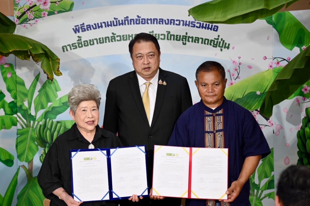 นายสุชาติ กล่าวต่อว่า “จากโควตาภายใต้ความตกลงดังกล่าว ไทยสามารถใช้สิทธิประโยชน์ส่งออกกล้วยโดยไม่เสียภาษีนำเข้า ได้อีกจำนวนมาก กรมการค้าภายในจึงเข้ามาต่อยอดโดยการสนับสนุนให้เกษตรกรหันมาปลูกกล้วยหอมเขียว (คาเวนดิช) ที่มีความได้เปรียบด้านความทนทานต่อโรคและการขนส่ง ผลผลิตต่อไร่สูง และเก็บรักษาได้นานโดยกรมการค้าภายใน ได้สนับสนุนกล้วยหอมเขียวครบวงจร ตั้งแต่ให้คำปรึกษาเชิงลึกโดยผู้เชี่ยวชาญในพื้นที่ ช่วยเกษตรกรดูแลหลังเก็บเกี่ยว คัดคุณภาพ และเลือกบรรจุภัณฑ์เหมาะสมเพื่อการส่งออก พร้อมสนับสนุนพันธุ์กล้วยหอมเขียวต้นแบบกว่า 128,000 ต้น ครอบคลุมพื้นที่ 400 ไร่ ตอบโจทย์ตลาดญี่ปุ่น นอกจากนี้ยังเชื่อมโยงตลาดญี่ปุ่นผ่านการลงนามบันทึกข้อตกลงความร่วมมือ (MOU) เสริมสร้างโอกาสส่งออกกล้วยหอมเขียวไทยสู่ตลาดญี่ปุ่นเพิ่มมากขึ้น