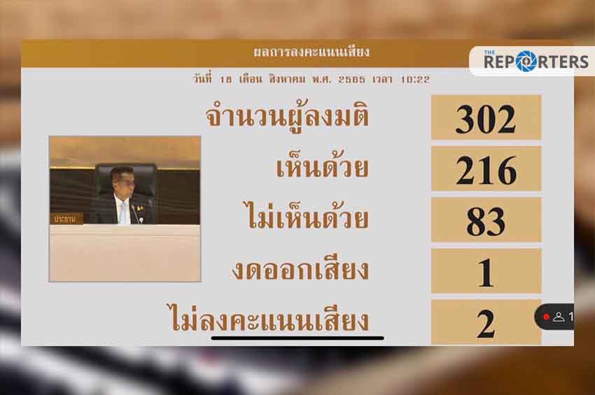 ในที่สุด เวลา 10:22 น. ที่ประชุมได้มีมติเห็นด้วยกับกรรมาธิการฯ เสียงข้างมาก ให้ไม่ต้องแก้ไขงบประมาณของกระทรวงกลาโหม ด้วยคะแนนเสียง 216 ต่อ 83 เสียง งดออกเสียง 1 เสียง