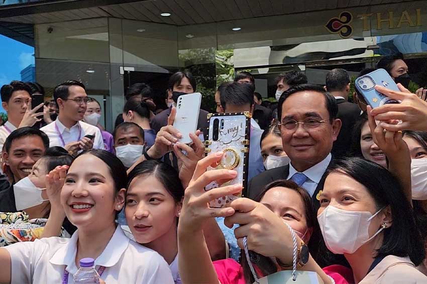 จากนั้นนายกรัฐมนตรีได้ถ่ายรูปเซลฟี่ ร่วมกับ ลูกเรือ (แอร์โฮสเตส) รุ่นใหม่ และส่งมินิฮาร์ทอย่างเป็นกันเอง ทั้งนี้ก่อนที่คุณเอกประยุทธ์จะเดินทางกลับได้หันมาส่งสัญลักษณ์ โบกมือให้กับพนักงานการบินไทยที่มารอส่ง และส่งสัญลักษณ์ I love you พร้อมกับระบุว่าการบินไทยเขาเรียกว่ารักคุณเท่าฟ้าใช่ไหม แต่วันนี้นายกรัฐมนตรีรักพวกเธอเท่าฟ้าด้วย ก่อนที่จะนำมือมาทาบที่อก พร้อมกับกล่าวต่อว่าช่วยกัน ช่วยกันทำให้สำเร็จ ขอบคุณทุกอย่าง และเมื่อเดินขึ้นรถได้หันมาส่งสัญลักษณ์ I love you ให้พนักงานที่ยืนรอส่งอยู่ฝั่งตรง นำมือมาทุบที่หน้าอกด้านซ้ายเบาๆ โดยขณะที่รถกำลังจะเคลื่อนออก พลเอกประยุทธ์ ได้หันมาบอกพนักงานอีกครั้งว่าตนขอให้กำลังใจทุกคน