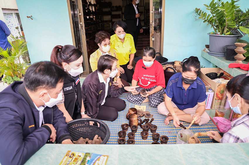 โฆษกแรงงาน ลงพื้นที่ จ.เพชรบุรี เยี่ยมให้กำลังใจ กลุ่มรับงานไปทำที่บ้านแปรรูปไม้ตาล เพิ่มมูลค่าสินค้า