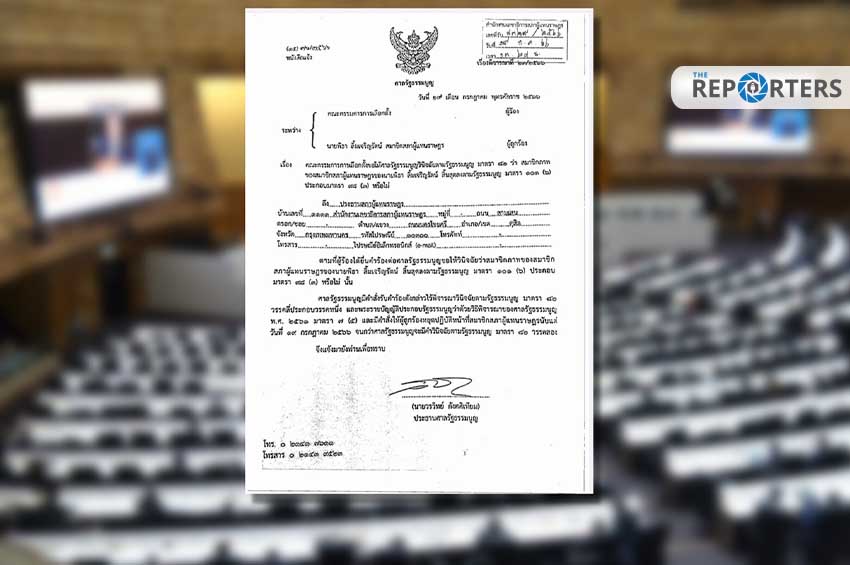 ประธานศาลรัฐธรรมนูญส่งหนังสือแจ้งมายังประธานสภาผู้แทนราษฎร กรณีศาลมีคำสั่งให้นายพิธาหยุดปฎิบัติหน้าที่ สส.ชั่วคราวนับแต่วันที่ 19 ก.ค. จนกว่าจะมีคำวินิจฉัย