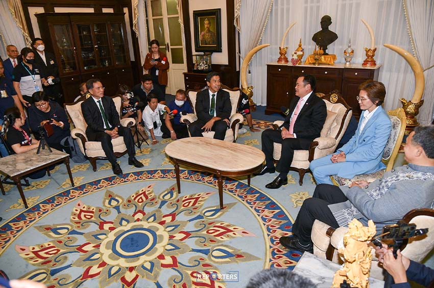 โดยบรรยากาศการพบกันเต็มไปด้วยรอยยิ้ม นายอนุทิน ได้ทักทายนายชัชชาติ พร้อมกล่าวว่าเมื่อวานนายชัชชาติ เข้าพบกับนายกฯ แบบพี่น้องกัน วันนี้มาพบแบบเพื่อนกัน เพราะเป็นเพื่อนเรียนกันมา ก่อนที่นายชัชชาติและนายอนุมินจะชนหมัดและจับมือกัน ซึ่งนายชัชชาติ ระบุว่า “จับมือดีกว่า เดี๋ยวจะเหมือนกับนายกฯ” ซึ่งนายอนุทิน ได้มอบพระพุทธรูปปางลีลา เป็นที่ระลึกให้แก่นายชัชชาติด้วย