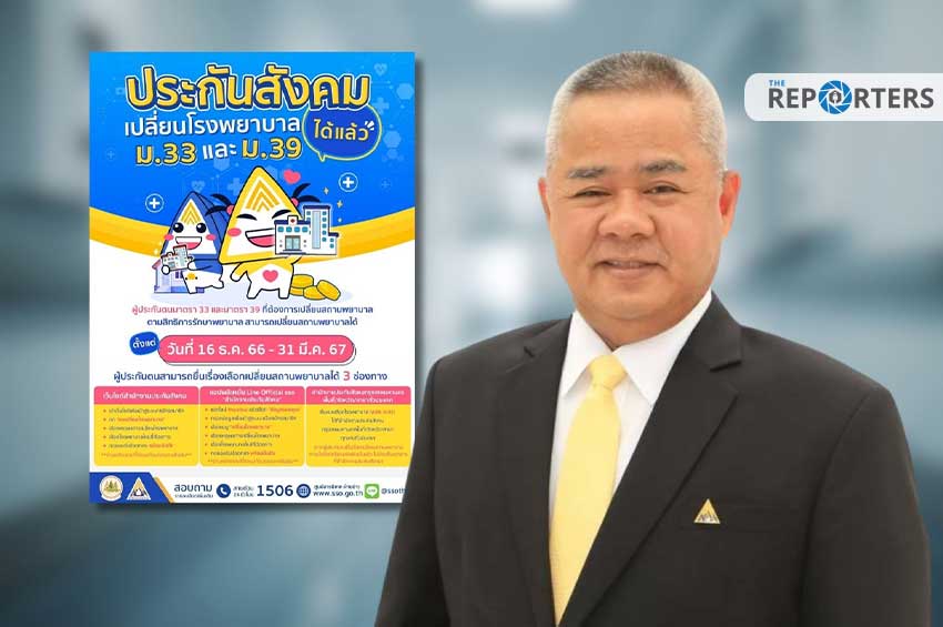 นายบุญสงค์ ทัพชัยยุทธ์ เลขาธิการสำนักงานประกันสังคม กระทรวงแรงงาน แจ้งว่า สำนักงานประกันสังคมได้เปิดให้ผู้ประกันตนมาตรา 33 และมาตรา 39 สามารถแจ้งขอเปลี่ยนสถานพยาบาลประจำปี ด้วยเหตุจำเป็น เช่น ย้ายที่พักอาศัย ย้ายสถานที่ประจำทำงาน สามารถเริ่มเปลี่ยนสถานพยาบาลได้ตั้งแต่วันนี้ ถึงวันที่ 31 มีนาคม 2567 โดยยื่นเรื่องเปลี่ยนสถานพยาบาลผ่าน 3 ช่องทาง มีขั้นตอนการทำรายการ ดังนี้
