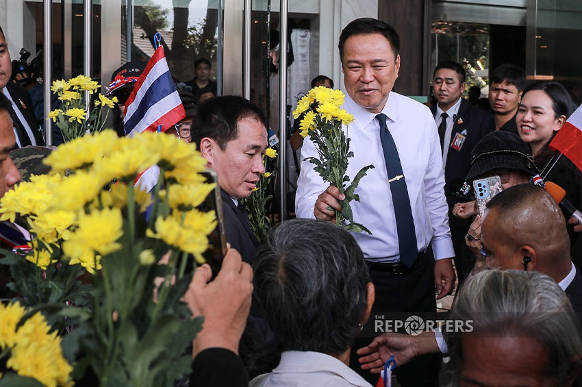 ‘อนุทิน’ รับหนังสือ-ช่อดอกไม้ ศปปส. ให้กำลังใจปกป้องอธิปไตย