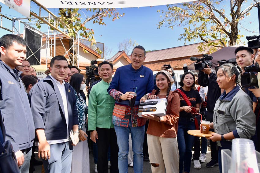 นายกฯ เดินชมตลาดจริงใจ ชิมกาแฟภาคเหนือ