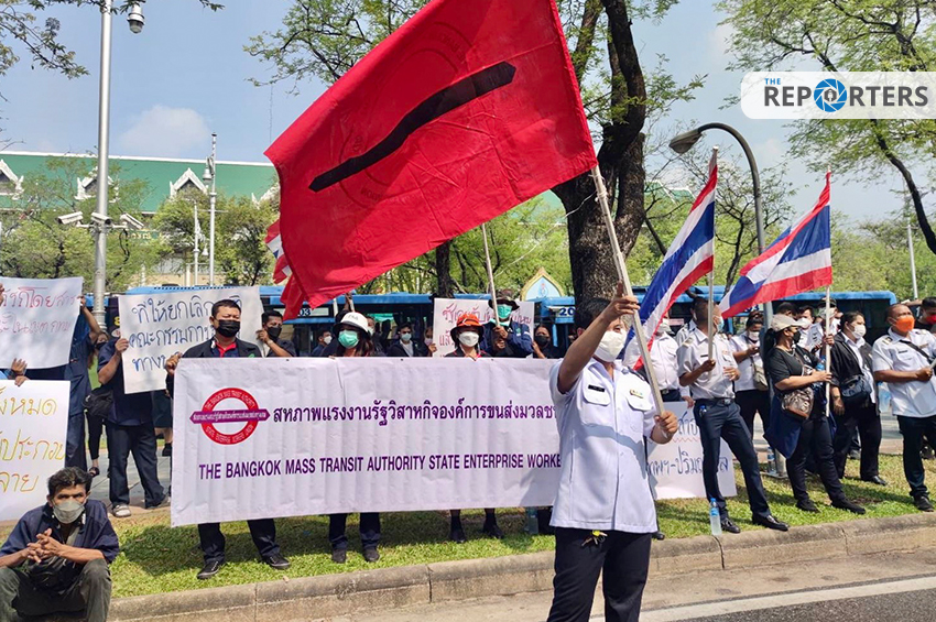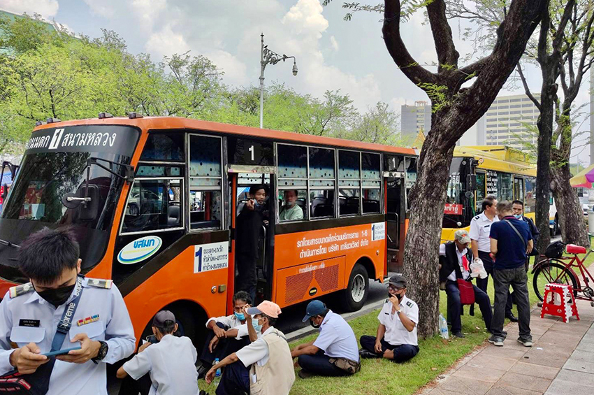 วันนี้ (20 เม.ย.65) นายบุญมา ป๋งมา รักษาการประธานสหภาพแรงงานรัฐวิสาหกิจองค์การขนส่งมวลชนกรุงเทพ (สร.ขสมก.) พร้อมด้วยพนักงาน ขสมก. และพนักงานรถร่วมบริการฯ รวมตัวประท้วง พร้อมยื่นหนังสือคัดค้านการจ้างเหมาเอกชนวิ่งบริการรถไฟฟ้า (EV) 400 คัน ที่กระทรวงคมนาคม