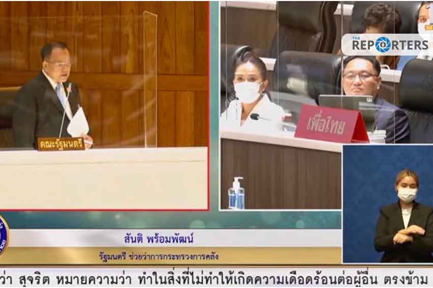 วันนี้ (20 ก.ค. 65) ในการประชุมสภาผู้แทนราษฎร ครั้งที่ 13 (สมัยสามัญประจำปีครั้งที่หนึ่ง) เป็นพิเศษ วาระพิจารณาญัตติขอเปิดอภิปรายทั่วไปเพื่อลงมติไม่ไว้วางใจรัฐมนตรีเป็นรายบุคคล นายยุทธพงศ์ จรัสเสถียร สมาชิกสภาผู้แทนราษฎร (ส.ส.) จังหวัดมหาสารคาม พรรคเพื่อไทย อภิปรายไม่ไว้วางใจ นายสันติ พร้อมพัฒน์ รัฐมนตรีช่วยว่าการกระทรวงการคลัง กรณีสืบเนื่องจากระบบท่อส่งน้ำสายหลักในภาคตะวันออก ซึ่งกรมธนารักษ์ได้รับมอบจากกรมโยธาธิการและผังเมือง ก่อนจะมอบหมายให้บริษัท อีสต์ วอเตอร์ เป็นผู้บริหาร โดยมีผู้ถือหุ้นใหญ่ของบริษัทคือ การประปาส่วนภูมิภาค (กปภ.) สิ้นสุดในวันที่ 31 ธ.ค. 2566 จนกระทั่งเมื่อ 11 มิ.ย. 2564 คณะกรรมการที่ราชพัสดุ มีมติเห็นชอบให้รวมสัญญาการบริหารของทั้ง 3 โครงการไว้เป็นสัญญาเดียวกัน เป็นเหตุให้กรมธนารักษ์ต้องคัดเลือกบริษัทเอกชนเพื่อมาบริหารจัดการระบบ แต่ไม่เปิดประมูลทั่วไป