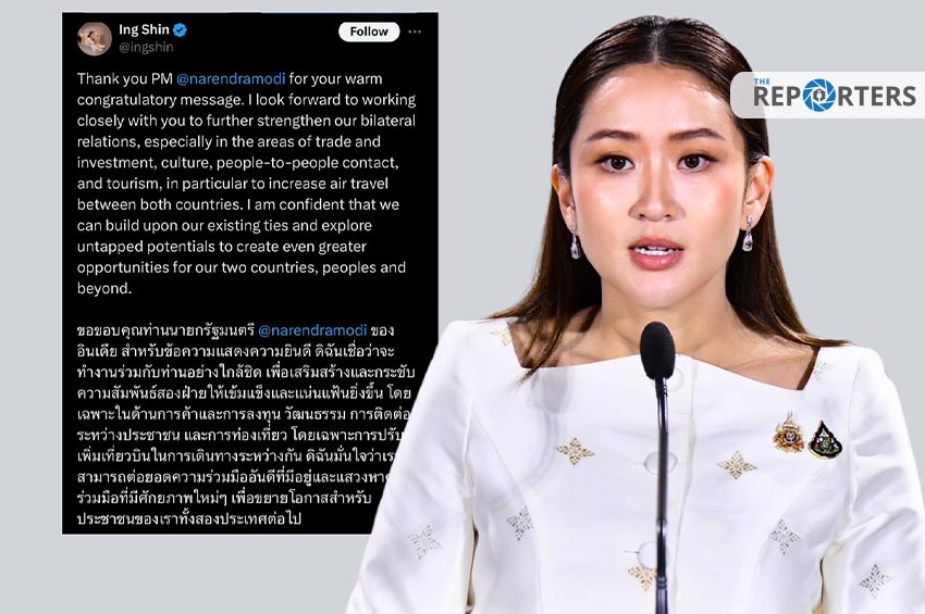นางสาวแพทองธาร ชินวัตร นายกรัฐมนตรี Repost Twitter (X) ถึงนายนเรนทร โมที (H.E. Mr. Narendra Modi) นายกรัฐมนตรีสาธารณรัฐอินเดีย ซึ่งได้โพสต์ Twitter (X) แสดงความยินดีนางสาวแพทองธาร โอกาสเข้ารับตำแหน่งนายกรัฐมนตรีของไทย และอวยพรให้ดำรงตำแหน่งประสบความสำเร็จ โดยนายนเรนทรฯ หวังว่า จะได้ร่วมงานกับนายกรัฐมนตรีของไทย เพื่อกระชับความสัมพันธ์ทวิภาคีระหว่างอินเดีย และไทย ซึ่งตั้งอยู่บนรากฐานอันแข็งแกร่งของอารยธรรม วัฒนธรรม และความเชื่อมโยงระหว่างประชาชนของทั้งสองประเทศ
