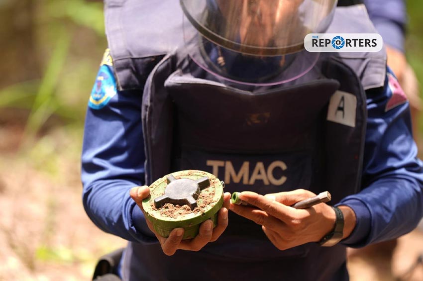 พ.อ.สมโชค จันทาสี ผู้บังคับหน่วยปฏิบัติการทุ่นระเบิดด้านมนุษยธรรมที่ 3 เปิดเผยว่า ภารกิจของ TMAC ในการเก็บกู้ทุ่นระเบิด ตั้งแต่ปี 2543 และเพิ่งหยุดปฏิบัติภารกิจตอนที่สู้รบกัน โดยเก็บกู้ได้ทั้งหมดประมาณ 49,000 กว่าลูก ซึ่งเป็นที่ชัดเจนว่า ทุ่นไหนเก่า ทุ่นไหนใหม่ โดยสังเกตได้จากรอยดิน รอยสนิม ที่แทบไม่เห็นเลขทะเบียนของระเบิด แตกต่างจากทุ่นระเบิด PMN-2 ที่เพิ่งเก็บกู้ได้ในช่วงที่มีการปะทะกัน และระเบิดดังกล่าวถูกฝังอยู่ในพี่นที่ไทย ตามเส้นทางการลาดตระเวนของทหารไทยที่ตระเวนประจำอยู่แล้ว ในลักษณะการหวังผลเพื่อสังหาร เพราะมีการวางทุ่นระเบิดเป็นกลุ่ม เว้นระยะห่างเพียงแค่ 40 เซนติเมตร และบางจุดหวังผลให้บาดเจ็บ โดยวางทุ่นระเบิดห่างประมาณ 1 เมตร ซึ่งการนำระเบิดทั้งแบบเก่า และใหม่ที่มาแสดงให้คณะฯ ดู ก็เพื่อแสดงข้อเท็จจริงให้เห็นว่าทางฝั่งกัมพูชามีการละเมิดข้อตกลง