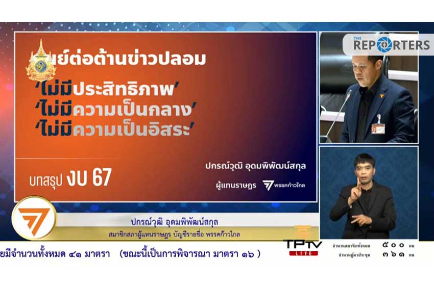 ‘ปกรณ์วุฒิ‘ เสนอตัดงบศูนย์ต้านข่าวปลอมทั้งโครงการ 69 ล้านบาท
