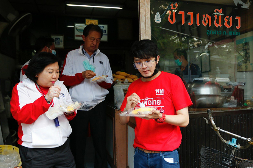 พรรคเพื่อไทยนำโดย นายวิชาญ มีนชัยนันท์ ประธานภาค กทม. และอดีตรัฐมนตรีช่วยว่าการกระทรวงสาธารณสุข นางพวงเพ็ชร ชุนละเอียด ผู้อำนวยการเลือกตั้ง ส.ก. นายแพทย์พรหมินทร์ เลิศสุริย์เดช ผู้อำนวยการฝ่ายนโยบายหาเสียงเลือกตั้ง ส.ก. นางสาวขัตติยา สวัสดิผล อดีต ส.ส.บัญชีรายชื่อ พร้อมด้วยผู้สมัคร ส.ก. พรรคเพื่อไทย ประกอบด้วย นายบดินทร์ วัชโรบล ผู้สมัคร ส.ก.เขตพระนคร เบอร์ 3 นายศิริพงษ์ ลิมปิชัย ผู้สมัคร ส.ก.เขตดุสิต เบอร์ 8 นายเมธา ขำโสภา ผู้สมัคร ส.ก.เขตป้อมปราบศัตรูพ่าย เบอร์ 8 ลงพื้นที่บริเวณสะพานพระราม 8 ฝั่งพระนคร และวัดอินทรวิหาร เพื่อศึกษาข้อมูลซอฟต์พาวเวอร์ พร้อมชิมข้าวเหนียวมะม่วงร้านลูกสาว ก.พาณิช รวมทั้งวัฒนธรรมการท่องเที่ยว เพื่อนำไปสู่การผลักดันนโยบาย ‘50 เขต 50 ซอฟต์พาวเวอร์’ เพื่อนำไปสู่การสร้างความมั่งคั่งให้คนกรุงเทพฯ
