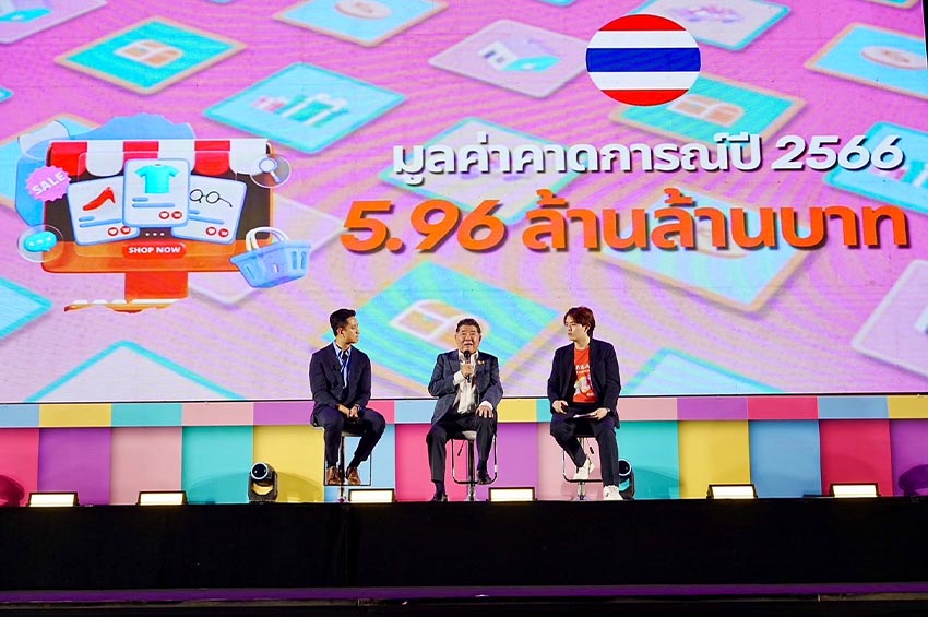 ในปี 2566 การค้าในระบบอีคอมเมิร์ซมีมูลค่าเกือบ 6 ล้านล้านบาท และจะยิ่งเติบโตในอนาคต กระทรวงพาณิชย์ให้ความสำคัญ โดยเฉพาะผู้ประกอบการรายเล็ก SMEs ผู้ประกอบการชุมชน จะมีการเลือกชุมชนจาก 10 จังหวัด มาร่วมมือกับอาลีบาบาส่งออกสินค้าผ่านแพลตฟอร์มให้ชุมชนเข้มแข็ง และส่งเสริมสินค้าไทยผ่านแฟลตฟอร์มต่างชาติ เช่น Tmall Amazon Rakuten เป็นต้น และวันที่ 25 กันยายน 2567 จะมีกิจกรรมให้ Influencer จากต่างประเทศคัดเลือกสินค้าไทย นำไปจัด Live ขายสินค้าจากประเทศไทยไปยังผู้บริโภคในประทศจีน รวมไปถึงใช้ซีรีส์วาย และซีรีส์ยูริ ส่งเสริมสินค้าไทย