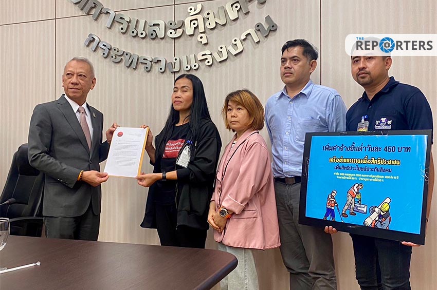 เครือข่ายแรงงาน ยื่นหนังสือ รมว.แรงงาน ร้องเพิ่มค่าแรงขั้นต่ำ 450 บาท เร่งปรับเกณฑ์ให้ผู้ประกันตนทุกคนมีสิทธิเลือกตั้งบอร์ดประกันสังคม