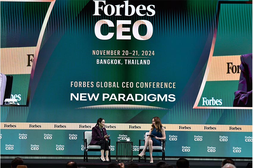 นายกรัฐมนตรี ร่วมสนทนา งาน Forbes Global CEO Conference ขอนักลงทุนเชื่อมั่นเสถียรภาพรัฐบาลอยู่ครบเทอม ปลื้มถูกจัดลำดับเป็นนายกหญิงอายุน้อยสุดของโลก กระตุ้นเศรษฐกิจแจกเงินหมื่นเฟส 2 พุ่งเป้าเงินสะพัด ลั่น จุดยืนไทยวางตัวเป็นทูตสันติภาพ พร้อมปรับตัวตามนโยบายทรัมป์