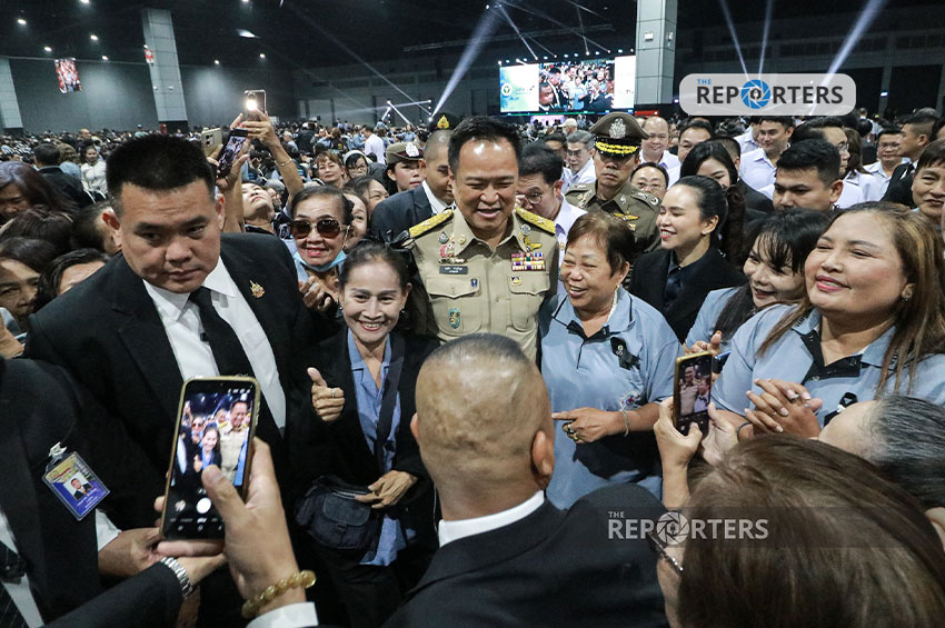 “ผมซ้อมๆ ไว้เดี๋ยวก็เลือกตั้งแล้ว วันนี้ผมเลยมาเจอพี่น้อง อสม. มากันเยอะลิบหูลิบตาไปหมด มาเป็นหมื่นๆ คน ไม่ว่าใครก็ตามเจ๋งหรือเก๋าขนาดไหน เจอคนเป็นหมื่น เหมือนคนที่มานั่งเป็นพวกเดียวกันแล้วต้องพูดต่อหน้าเขาก็สั่นทุกคน ขณะที่ผมพูดกับทุกคนอยากให้รู้ว่าขาผมสั่นขนาดไหน แต่สั่นด้วยความตื่นเต้นดีใจ และสั่นสู้ทุกครั้งเมื่อเจออสม. เพราะเราเคยเป็นนักรบด้วยกันมาก่อนสมัยโควิด-19 ที่ต้องช่วยกันดูแลพี่น้องประชาชนมากมาย และไม่ว่าสมัยไหนๆเมื่อได้ไปต่างประเทศ ผมก็หน้าบานเป็นกระด้ง เพราะไม่ว่าที่ไหนก็มีหมอพยาบาลนักวิทยาศาสตร์ แต่ที่เขาไม่มีเหมือนเราคือ อสม.” นายกรัฐมนตรี กล่าว