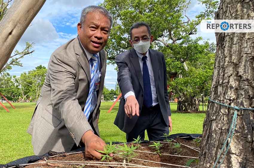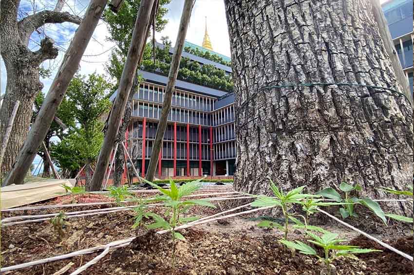 วันนี้ (22 ก.ค. 65) ที่ด้านหน้าอาคารพระสุริยันต์ ในบริเวณรัฐสภาแห่งใหม่ นายวัชระ เพชรทอง อดีตส.ส.บัญชีรายชื่อพรรคประชาธิปัตย์ และ นายสมบูรณ์ ทองบุราญ อดีต ส.ว. เดินทางมาตรวจสอบต้นไทรโบราณที่ถูกพายุพัดล้มในคืนฝนตกหนักเมื่อ 2 วันที่ผ่านมา ปรากฏว่าระหว่างตรวจสอบได้พบต้นกล้ากัญชาจำนวนร่วม 100 ต้น ที่เพาะชำอยู่ในกระถางพลาสติกสีดำ และบางส่วนปลูกเรียงรายโคนซากต้นไม้ใหญ่ที่ตายระหว่างล้อมไว้รอการลงปลูกในดิน