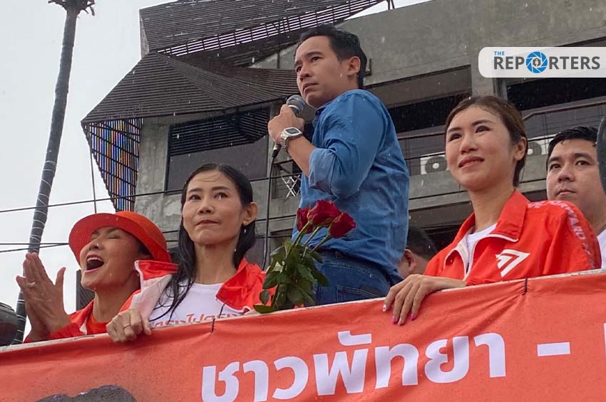 ขอ 8 พรรคร่วมรักษาสัจจะที่หาเสียงไว้ ถามแรง “จะเลือกตั้งทำไม ชี้มาเลยคุณจะเอาใครเป็นนายกฯ” ยืนยันสู้ต่อไม่ยอมโดนถีบลงจากเรือ “หากเขาไม่ให้ผมเข้าสภา ผมจะอยู่กับประชาชน” ปราศรัยกลางสายฝนริมหาดจอมเทียน
