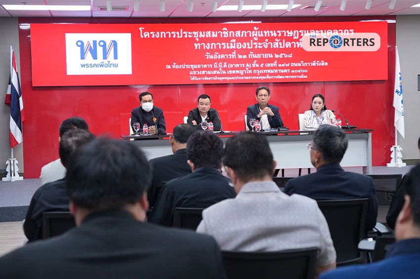 วันนี้ (23 ก.ย. 68) นายดนุพร ปุณณกันต์ สมาชิกสภาผู้แทนราษฎร (สส.) แบบบัญชีรายชื่อ โฆษกพรรคเพื่อไทย แถลงข่าวประจำสัปดาห์ โดยมีนายวิสุทธิ์ ไชยณรุณ สส. บัญชีรายชื่อ และประธานสส. พรรคเพื่อไทย ทำหน้าที่เป็นประธานการประชุม โดยมีแกนนำพรรค และ สส. เข้าประชุมอย่างพร้อมเพรียง อาทิ น.ส.แพทองธาร ชินวัตร หัวหน้าพรรคเพื่อไทย, นายภูมิธรรม เวชยชัย, นายสุริยะ จึงรุ่งเรืองกิจ, นายสรวงศ์ เทียนทอง สส.สระแก้ว และเลขาธิการพรรค, นายสุทิน คลังแสง สส.บัญชีรายชื่อ เป็นต้น