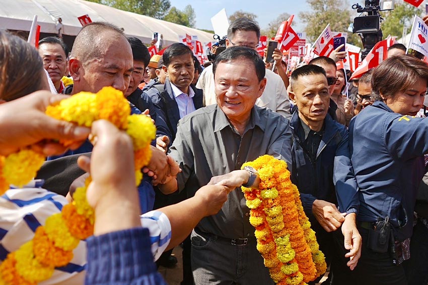 ‘ทักษิณ’ ปราศรัยกลางแดดเจาะพื้นที่ ศรีษะเกษ ช่วยผู้สมัครนายก อบจ. หาเสียง ตร. คุมเข้มทั้งใน และนอกเครื่องแบบ หลังถูกปาของขึ้นเวทีที่ จ.มหาสารคาม บอก ครั้งที่แล้วจัดแคมเปญ “ไล่หนูตีงูเห่า” เกือบได้ทั้งจังหวัด ชี้ รอบนี้มาขอเอง อย่าใจร้ายเลือกเพื่อไทย ไม่แบ่งคะแนน เผย นายกฯ สั่งการแก้ฝุ่น ใช้รถไฟฟ้า – รถเมล์ฟรี 7 วัน