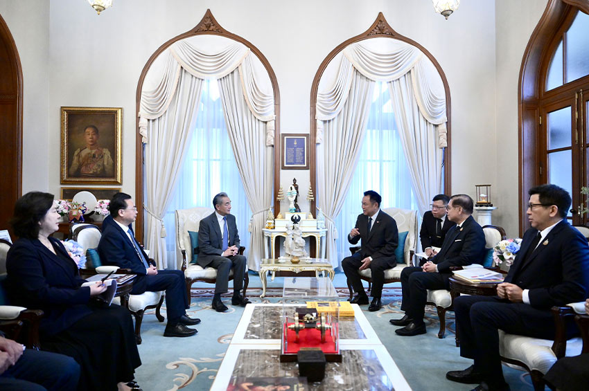 ’หวังอี้’ ถึงทำเนียบฯ นายกฯ-สีหศักดิ์ ให้การต้อนรับ ชมเปาะ “นายกฯ ไทยหล่อ” ก่อนหารือซื้อสินค้าเกษตรไทย-การลงทุน-ปราบสแกมเมอร์
