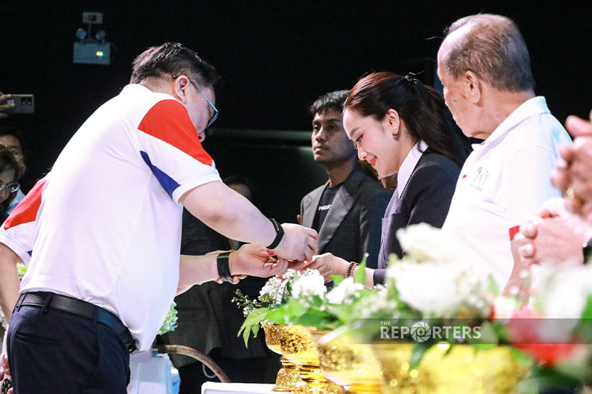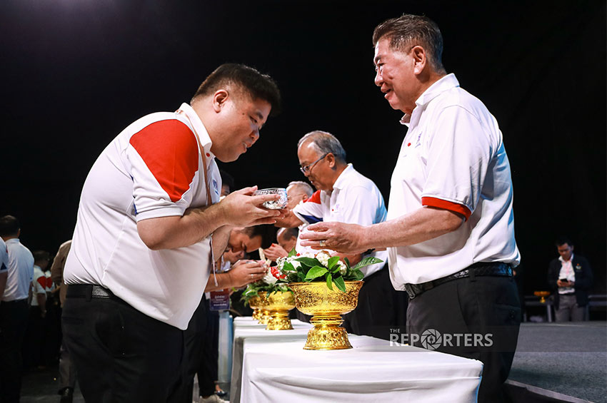 จากนั้นนางสาวแพทองธารได้เปิดโอกาสให้ สส. และสมาชิกพรรคได้รดน้ำขอพรด้วยในฐานะผู้ใหญ่ของพรรค ซึ่งบรรยากาศเป็นไปอย่างชื่นมื่น ขาดเพียงนายยศชนัน วงศ์สวัสดิ์ รองนายกรัฐมนตรีและรัฐมนตรีว่าการกระทรวงการอุดมศึกษา วิทยาศาสตร์ วิจัยและนวัตกรรม ที่ติดภารกิจของกระทรวง และนายสุริยะ จึงรุ่งเรืองกิจ รัฐมนตรีว่าการกระทรวงเกษตรและสหกรณ์ที่ลากิจ
