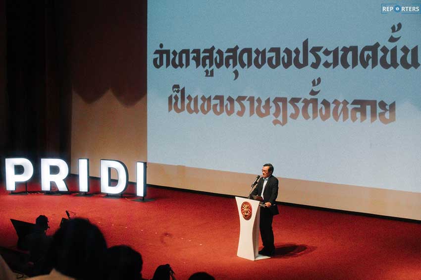 “90 ปีที่ผ่านมา สิ่งที่เกิดขึ้นกับสภาผู้แทนราษฎรคือ บางครั้งมีการยึดอำนาจจนบางช่วงไม่มีสภาผู้แทนราษฎร บางครั้งก็มีวุฒิสภาที่มาจากการแต่งตั้ง และยังกำหนดให้วุฒิสภามีอำนาจค้ำจุนและล้มล้างรัฐบาลได้อีก รวมถึงการแต่งตั้งตำแหน่งตุลาการศาลรัฐธรรมนูญและประธานศาลปกครองสูงสุด ทั้งหมดนี้แตกต่างจากเจตจำนงของคณะราษฎรอย่างสิ้นเชิง” นายจาตุรนต์ กล่าว