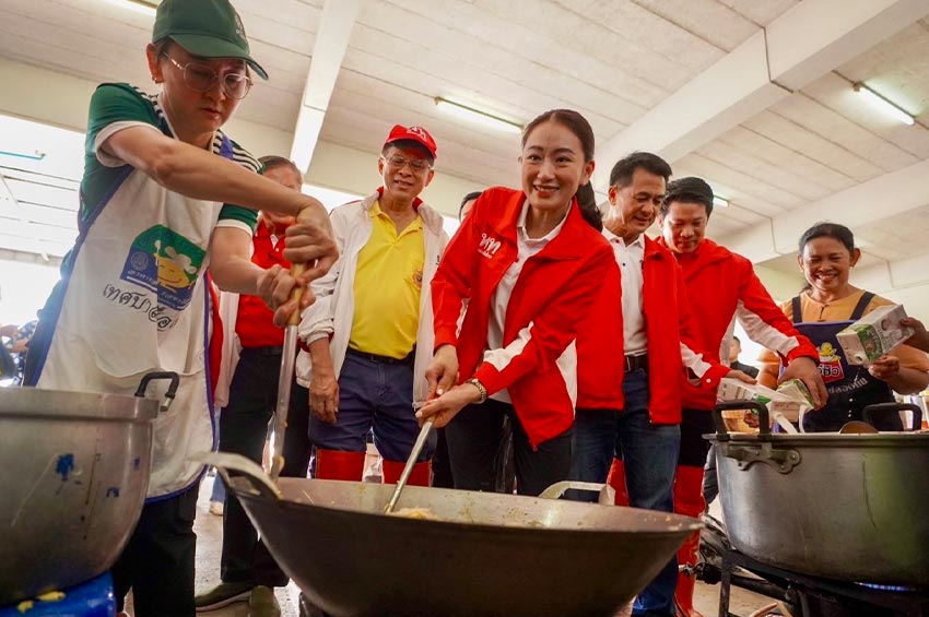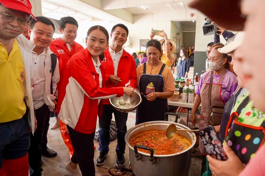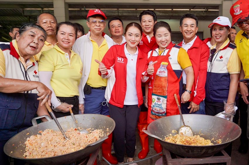 นางสาวแพทองธาร ได้ช่วยปรุงอาหาร ทอดไข่เจียว ผัดเส้น และช่วยทำข้าวผัดเมืองแพร่ ร่วมกับใน นพ.ชลน่าน และบรรจุอาหารใส่ถุง เพื่อนำไปมอบให้กับผู้ประสบภัยในจุดที่น้ำยังท่วมสูง โดยอาสาสมัครที่มาช่วยกันทำอาหาร และบรรจุอาหารพากันรุมล้อมขอถ่ายภาพ และแสดงความดีใจที่นางสาวแพทองธารมาเยี่ยมเยียนและให้กำลังใจถึงที่ รวมถึงได้มอบกล้วยหอมให้ โดยระบุว่าบอกว่า จะได้ทำอะไรง่าย ๆ
