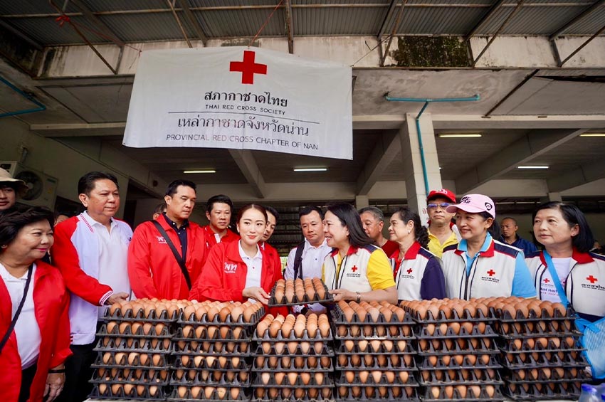ทันทีที่มาถึงนางสาวแพทองธาร เดินทางไปยังสถานีดับเพลิงเทศบาลเมืองน่าน ที่ใช้เป็นที่สำหรับประกอบอาหารเป็นโรงครัว นางสาวแพทองธาร ได้เดินทักทายให้กำลังใจอาสาสมัครและสภากาชาด ที่มาช่วยกันปรุงอาหารให้กับประชาชน