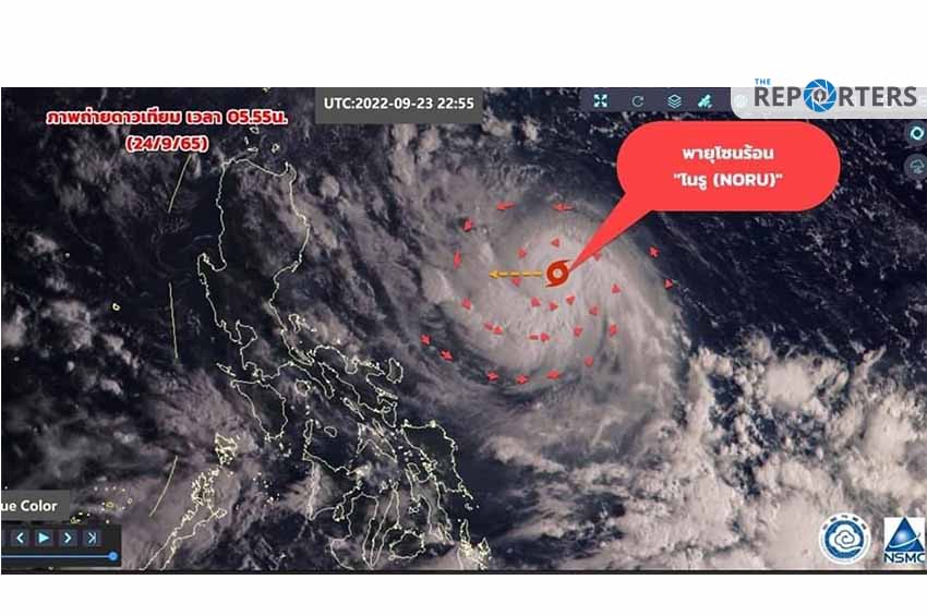 กรมอุตุนิยมวิทยา ออกประกาศฉบับที่ 1 (248/2565) เรื่อง พายุ “โนรู” โดยระบุว่า เมื่อเวลา 13.00 น. วานนี้ พายุดีเปรสชันบริเวณมหาสมุทรแปชิฟิกหรือด้านตะวันออกของประเทศฟิลิปปินส์ ได้ทวีกำลังขึ้นเป็นพายุโชนร้อนโนรู (NORU) แล้ว โดยจะเคลื่อนผ่านประเทศฟิลิปปินส์ ลงทะเลจีนใต้ตอนกลาง ช่วงวันที่ 25 – 26 กันยายน 2565