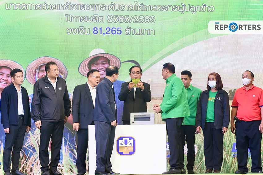 จากเป้าหมายรวม 81,265 ล้านบาท ผ่านโครงการสนับสนุนค่าบริหารจัดการและพัฒนาคุณภาพผลผลิตเกษตรกรผู้ปลูกข้าว ปีการผลิต 2565/66 ในอัตราไร่ละ 1,000 บาท สูงสุดไม่เกิน 20 ไร่ และโครงการประกันรายได้เกษตรกรผู้ปลูกข้าว ปีการผลิต 2565/66 พร้อมมาตรการคู่ขนาน โครงการสินเชื่อชะลอการขายข้าวเปลือกนาปี ที่เกษตรกรไม่ต้องเสียดอกเบี้ย แล้วยังได้รับเงินช่วยเหลือค่าฝากเก็บและรักษาคุณภาพข้าวเปลือกอีก 1,500 บาทต่อตัน และสินเชื่อเพื่อรวบรวมข้าวและสร้างมูลค่าเพิ่มโดยสถาบันเกษตรกร ปีการผลิต 2565/66 วงเงินสินเชื่อ 10,000 ล้านบาท ดอกเบี้ย 1% มุ่งเป้าหมายเกษตรกรได้รับประโยชน์กว่า 4.68 ล้านครัวเรือน