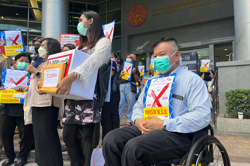 วันนี้ (25 มี.ค. 65) นางสุนทรี หัตถี เซ่งกิ่ง ผู้แทนเครือข่ายคัดค้านร่างกฎหมายควบคุมการรวมกลุ่มของประชาชน เข้ายื่นรายชื่อกว่า 13,379 รายชื่อ ที่เรียกร้องผ่านแคมเปญออนไลน์บนเว็บไซต์ Change .org ให้กับรัฐมนตรีว่าการกระทรวงพม. เพื่อคัดค้านร่างกฎหมายควบคุมการรวมกลุ่มของประชาชน และขอให้กระทรวงพัฒนาสังคมและความมั่นคงของมนุษย์ยุติการขับเคลื่อนและการรับฟังความเห็นของกฎหมายนี้ทันที โดยมีนายอนุกูล ปีดแก้ว อธิบดีกรมพัฒนาสังคมและสวัสดิการ เป็นตัวแทนรับ ก่อนจะเดินทางไปยื่นหนังสือให้นายกฯ ที่ทำเนียบรัฐบาล แต่ไม่สามารถเข้ายื่นในทำเนียบฯได้