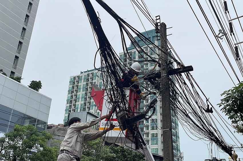 ปัญหาสายสื่อสารที่รกรุงรังเป็นปัญหาหลักของประชาชน การจะนำสายไฟหรือสายสื่อสารลงดินจะเป็นขั้นตอนต่อไปมีรายละเอียดเยอะ เพราะต้องทำให้ต้นทุนต่ำสุด เพื่อไม่ให้เป็นภาระแก่ประชาชน การจัดระเบียบเป็นขั้นตอนแรกที่สามารถทำได้เลยโดยไม่ต้องใช้งบประมาณ โดยขณะนี้กรุงเทพมหานครอยู่ระหว่างการร่างประกาศพาดสายสื่อสารต้องมีใบอนุญาตจาก กสทช.และการไฟฟ้านครหลวงเพื่อป้องกันไม่ให้เกิดสายผี