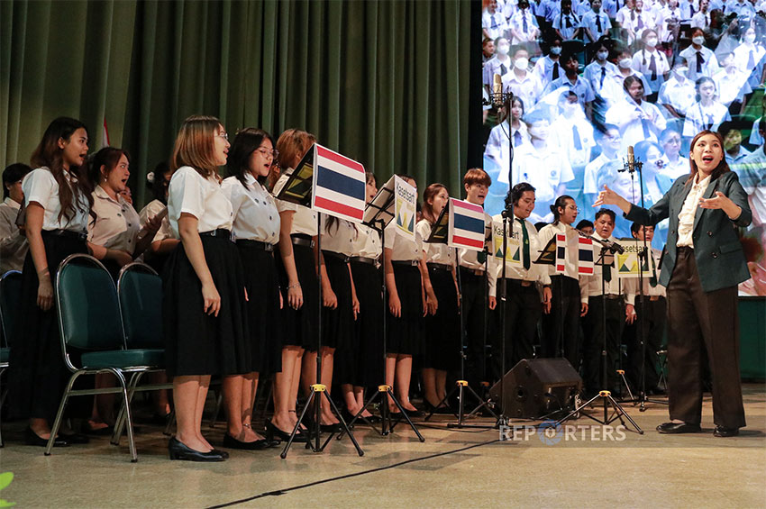 พล.ท.บุญสิน ได้เริ่มต้นด้วยการกล่าวทักทาย ว่า ก่อนที่ตนจะพูดอะไรกับทุกคนในวันนี้ อยากให้พวกเราได้ร้องเพลง เป็นเพลงที่บางคนร้องเบา บางคนก็ไม่อยากจะร้อง บางคนไม่มีที่ร้องด้วยซ้ำเพราะไม่มีแผ่นดินที่จะให้ร้อง วันนี้พวกเรามีแผ่นดิน จะร้องแบบเขินอายทำไม เราไม่ร้องวันนี้ วันหนึ่งถ้าเราไม่มีที่ร้อง เพลงนี้เราจะไม่ได้ร้องอีกเลย พร้อมให้ทุกคนในห้องประชุมร่วมกันร้องเพลงชาติ กับวงดนตรีของมหาวิทยาลัยเกษตรศาสตร์