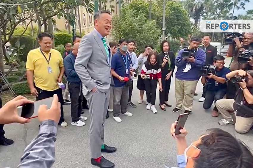 นายกฯ เศรษฐา ทักทายสื่อ ทำเนียบโชว์ถุงเท้า สีแดง – เขียว รับคริสต์มาส
