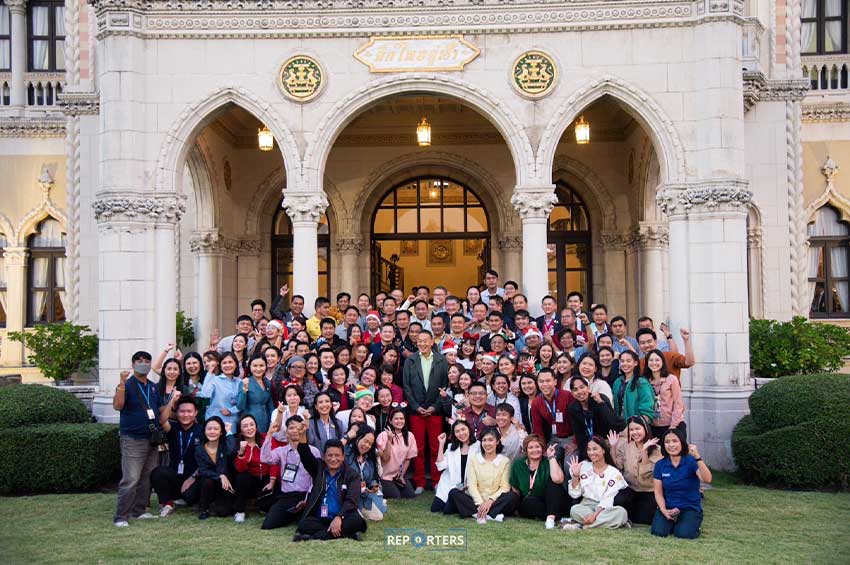 ‘เศรษฐา‘ ใส่เสื้อแดงควงลูกชายร่วมงานเลี้ยงปีใหม่