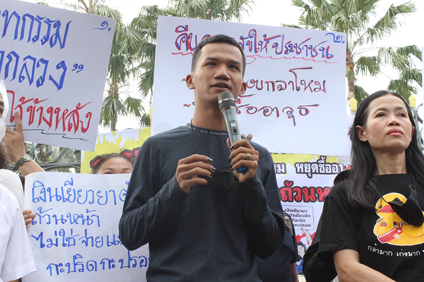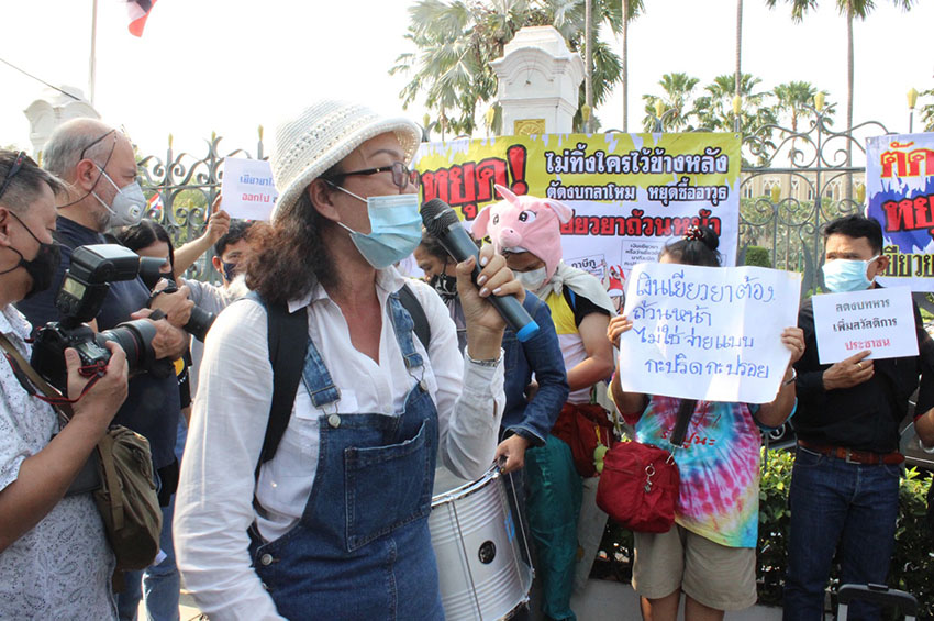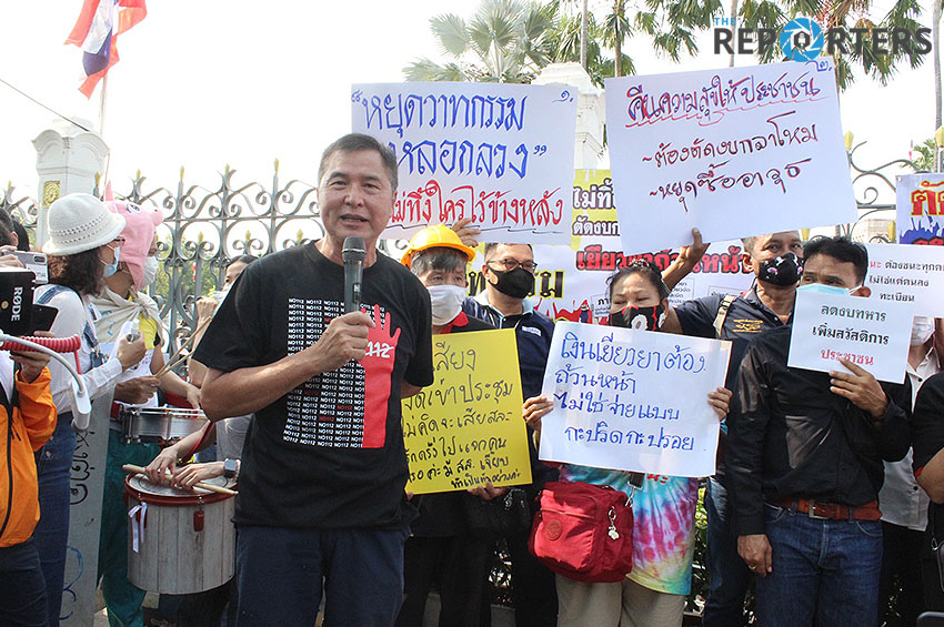 อย่างไรก็ตาม น.ส.ธนพร วิจันทร์ ได้เป็นตัวแทนเครือข่ายแรงงานฯ อ่านแถลงการณ์ ระบุว่า จากมติคณะรัฐมนตรีเมื่อวันที่ 19 ม.ค. 64 ที่เห็นชอบโครงการ “เราชนะ” เยียวยาประชาชนผู้ได้รับผลกระทบจากโควิด-19 นั้นจะจ่ายเงินเยียวยาจำนวน 3,500 บาทเป็นเวลา 2 เดือนรวม 7,000 บาทต่อคนทั้งหมด 31.1 ล้านคน โดยเน้นอาชีพอิสระ เกษตรกรผู้มีรายได้น้อยคล้ายกับโครงการเราไม่ทิ้งกัน แต่กลับไม่ให้เป็นเงินสด และจะโอนผ่านแอพพลิเคชั่นสัปดาห์ละครั้งจนครบ สิ่งนี้ทำให้เครือข่ายแรงงานเพื่อสิทธิประชาชนคับข้องใจอย่างยิ่ง โดยเฉพาะคำแถลงของนายสุพัฒนพงษ์ พันธ์มีเชาว์ รองนายกรัฐมนตรี และนายอาคม เติมพิทยาไพสิฐ รัฐมนตรีว่าการกระทรวงการคลังที่กล่าวว่าไม่อยากให้ประชาชนสัมผัสตัวเงิน เพราะโควิดเข้ามาปะปนได้และต้องการให้ประชาชนปรับตัวเป็นสังคมไร้เงินสดและถ้าให้เป็นเงินสดรัฐบาลจะ จำกัด อะไรไม่ได้เลยเงินเหล่านั้นจะหายไปกับสิ่งที่ควบคุมได้ยาก เช่น สุรา การพนัน ห้างร้านขนาดใหญ่ และการจ่ายเงินสัปดาห์ละ 1,000 บาทเพื่อให้ประชาชนได้วางแผนการใช้เงินที่จำเป็นต่อชีวิต