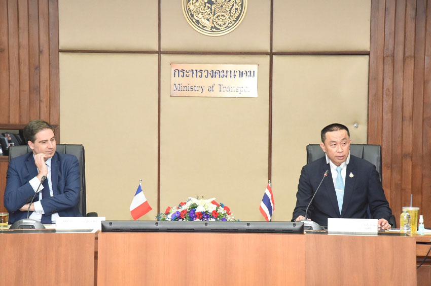 นอกจากนี้ นายศักดิ์สยาม ชิดชอบ รัฐมนตรีว่าการกระทรวงคมนาคม ได้นำเสนอข้อมูลโครงการสำคัญของกระทรวงคมนาคมที่ฝรั่งเศสให้ความสนใจ อาทิ โครงการรถไฟความเร็วสูงเชื่อมสามสนามบินโครงการรถไฟฟ้าในกรุงเทพมหานครและปริมณฑล โครงการด้านระบบขนส่งมวลชนในจังหวัดภูเก็ต โครงการทางพิเศษสายกะทู้ – ป่าตอง การพัฒนาสนามบินอู่ตะเภา และโครงการแลนด์บริดจ์ โดยกระทรวงคมนาคมยินดีให้ความสนับสนุนและส่งเสริมการร่วมลงทุนระหว่างบริษัทเอกชนของฝรั่งเศสกับบริษัทเอกชนของไทย เพื่อพัฒนาความร่วมมือด้านคมนาคมขนส่งให้ครอบคลุมทุกมิติ ทั้งระบบราง ทางบก ทางน้ำ และทางอากาศ ซึ่งฝรั่งเศสเป็นคู่ค้าที่แข็งแกร่งในสหภาพยุโรปและเป็นภาคีกับประเทศไทย
