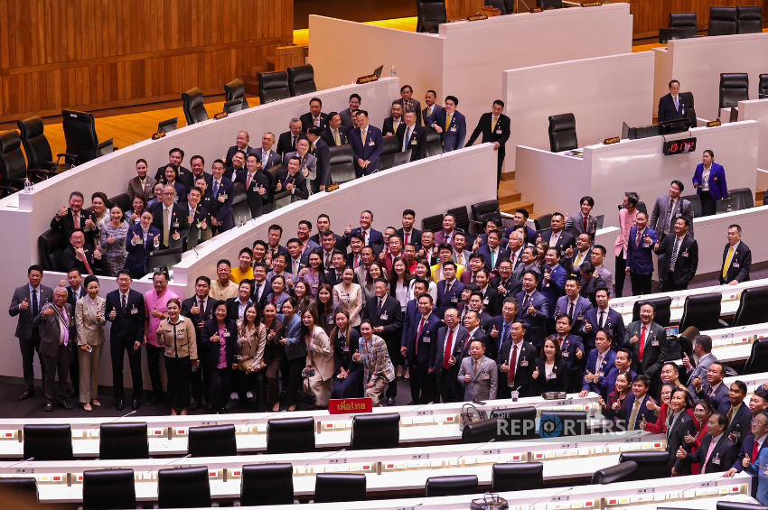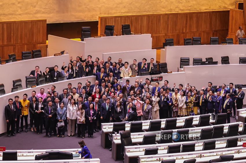 ผ่านไปด้วยดี ’เท้ง-ไหม’ ร่วมเฟรมถ่ายภาพ ’นายกฯ-ครม.‘ หลังสภาฯ โหวตไว้วางใจ ’แพทองธาร‘ ท่วมท้น 319 เสียง