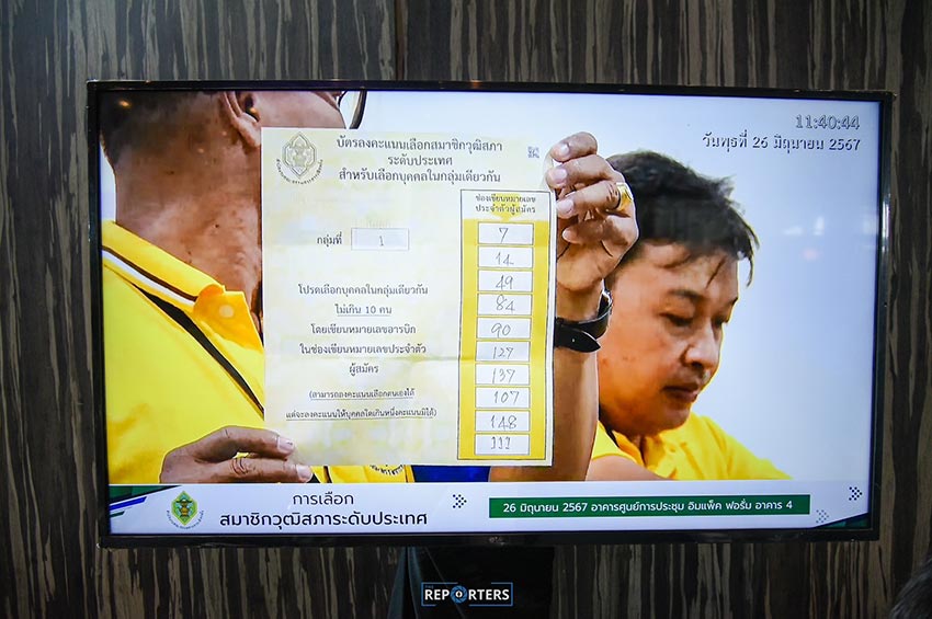 วันนี้ (26 มิ.ย. 67) เวลา 11:35 น. ที่อิมแพ็ค ฟอรั่ม เริ่มนับคะแนนในการเลือกสมาชิกวุฒิสภา (สว.) ในระดับประเทศในรอบแรก ซึ่งเป็นการเลือกภายในกลุ่ม โดยเริ่มนับคะแนนอาทิกลุ่มที่ 1, กลุ่มที่ 4, กลุ่มที่ 8, กลุ่มที่ 9, กลุ่มที่ 11, กลุ่มที่ 14 และกลุ่มที่ 19 ซึ่งผู้สมัคร สว. ต้องเลือกบุคคลในกลุ่มเดียวกันไม่เกิน 10 คน
