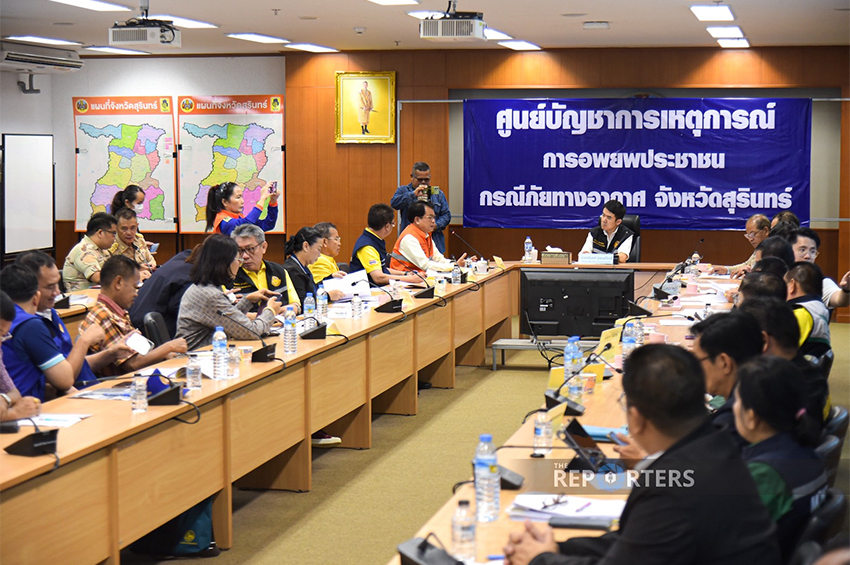 ผู้ว่าฯ จ.สุรินทร์ ได้รายงานสถานการณ์ในพื้นที่ ว่า สถานการณ์เริ่มตึงเครียดมาสักพัก และได้มีการเตรียมความพร้อมในพื้นที่ส่วนหลัง ซึ่งได้ทำแผนไว้เรียบร้อย และเมื่อเกิดเหตุการณ์ขึ้น ซึ่งก่อนหน้านั้นตลอด 1 สัปดาห์ได้มีการยั่วยุกันมาอย่างต่อเนื่อง รวมไปถึงการที่เจ้าหน้าที่ทหารลาดตระเวนได้เหยียบทุ่นระเบิด ในจังหวัดอุบลราชธานี ก็ทำให้เกิดการประทะกัน สำหรับในพื้นที่ก็มีหลงหลบภัยแต่ไม่เพียงพอ สถานการณ์ครั้งนี้รุนแรงกว่าปี 54 โดยครั้งนั้น จะยิงกันเป็นพัก ๆ ประชาชนก็จะเข้าไปหลบในหลุมหลบภัย แต่เมื่อปลอดภัย ก็จะอพยพออกมา