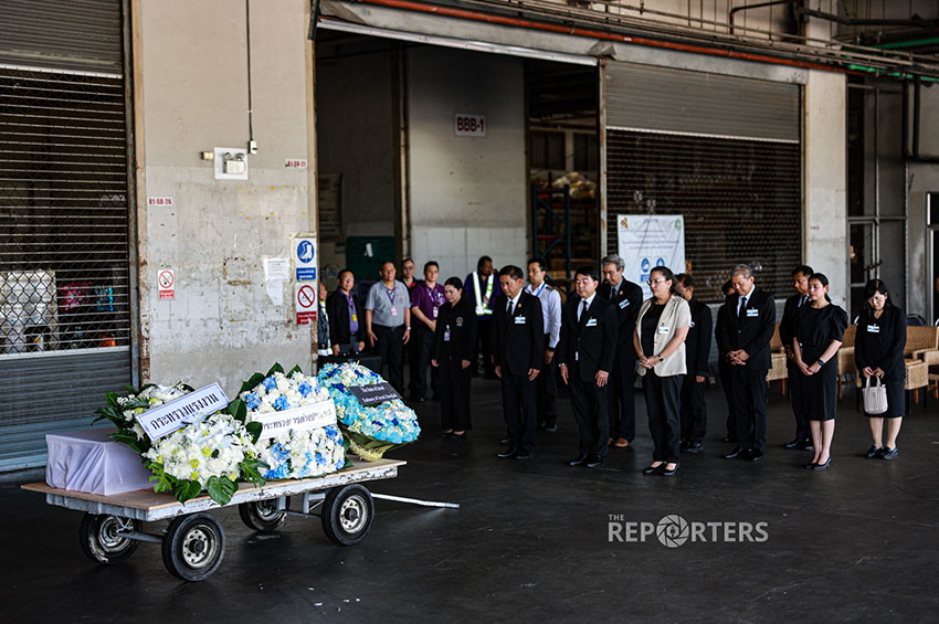 บรรยากาศการรับร่างของนายชัยวัฒน์ ตัวแทนจากกระทรวงการต่างประเทศ กระทรวงแรงงาน และผู้แทนจากสถานเอกอัครราชทูตอิสราเอลประจำประเทศไทย ได้ร่วมวางพวงหรีดพร้อมยืนสงบนิ่งเพื่อไว้อาลัยให้แก่ผู้เสียชีวิตเป็นเวลา 1 นาที ก่อนจะเคลื่อนร่างขึ้นรถตู้เพื่อกลับสู่ภูมิลำเนาเพื่อประกอบพิธีทางศาสนาต่อไป