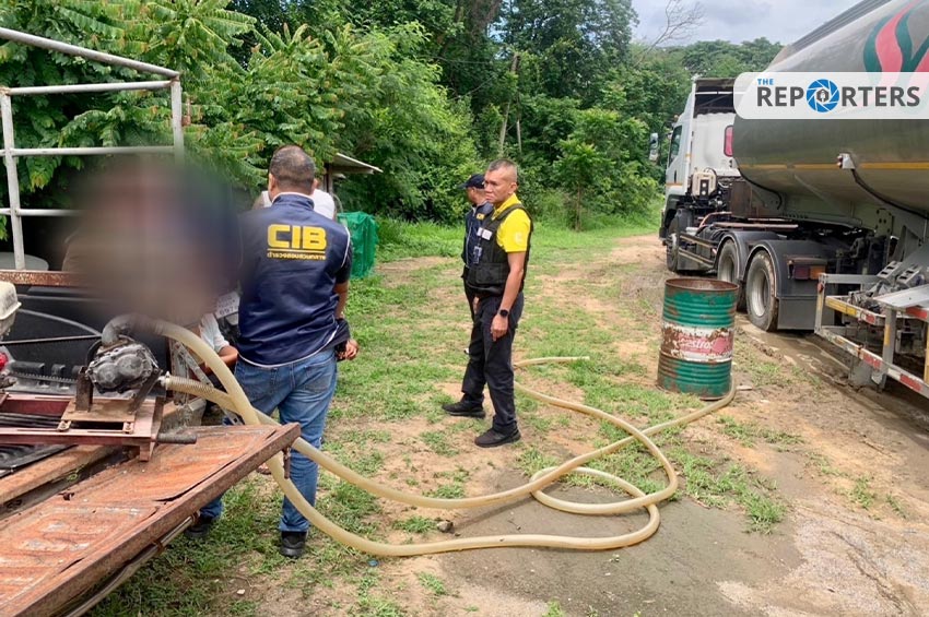 พร้อมตรวจยึดของกลาง รถขนส่งมันเชื้อเพลิง ทะเบียนหัวลาก 73-4691 ชลบุรี พ่วงทะเบียน 71-9344 ชลบุรี บรรทุกถังขนส่งน้ำมันเชื้อเพลิง ขนาดบรรจุ 48,000 ลิตร มีเอทานอลแปลงสภาพ จำนวนประมาณ 44,000 ลิตร รถยนต์ กะบะบรรทุก ทะเบียน บพ 3075 ชัยภูมิ จำนวน 1 คัน เครื่องสูบถ่าย พร้อมอุปกรณ์ ใช้สำหรับสูบถ่ายน้ำมันเชื้อเพลิง จำนวน 1 เครื่อง ถังเหล็ก ขนาดบรรจุ 200 ลิตร ใช้สำหรับตวงวัดปริมาตรน้ำมัน จำนวน 1 ถัง (เอทานอลแปลงสภาพ จำนวนประมาณ 120 ลิตร) ถังพลาสติก ทรงสี่เหลี่ยม ขนาดบรรจุ 1,000 ลิตร ใช้สำหรับเก็บเอทานอลแปลงสภาพ จำนวน 1 ถัง ถังพลาสติก ทรงกลม ขนาดบรรจุ 20 ลิตร ใช้สำหรับรองน้ำมันที่หัวจ่าย จำนวน 1 ถัง ประแจแหวนคู่ เบอร์ 21-23 จำนวน 1 อัน พบอยู่บริเวณช่องเก็บของ ด้านข้างรถขนส่งน้ำมัน สมุดจดรายการซื้อสินค้าในแต่ละวัน จำนวน 1 เล่ม พบอยู่บริเวณท้ายกะบะรถยนต์ กะบะบรรทุก ทะเบียน บพ3075 ชัยภูมิ สมุดบันทึกรายชื่อลูกค้า และหมายเลขบัญชีธนาคาร จำนวน 1 เล่ม รวมมูลค่าของกลางประมาณ 120,000 บาท