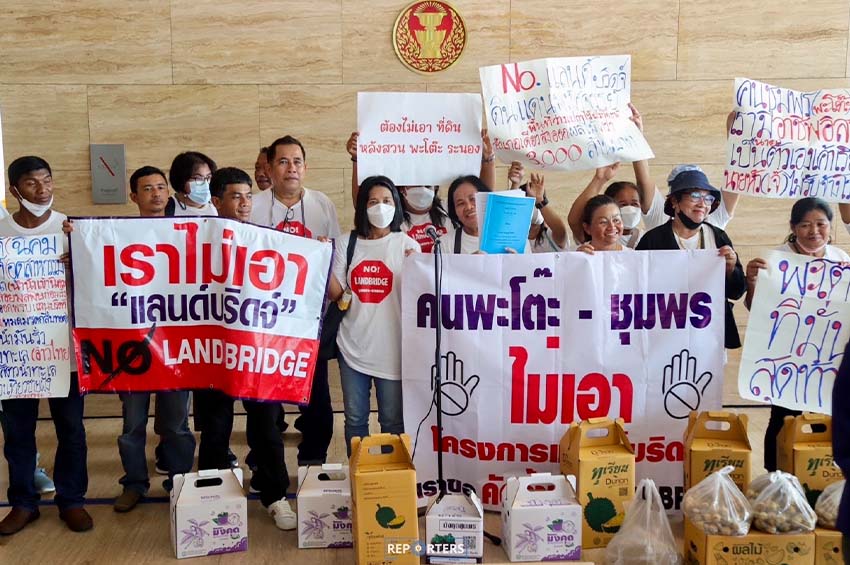 โดยในเอกสารร้องเรียนระบุว่า เครือข่ายผู้ที่ได้รับผลกระทบจากแลนด์บริดจ์ ชุมพร-ระนอง ซึ่งประกอบด้วยประมงพื้นบ้านเกษตรกร ผู้ประกอบการบริการ และธุรกิจท่องเที่ยวเชิงธรรมชาติ ได้มีการคัดค้านให้ยุติการรับฟังความคิดเห็นโครงการต่าง ๆ ที่เกี่ยวเนื่องกับโครงการพัฒนาโครงสร้างพื้นฐานด้านการคมนาคมขนส่ง เพื่อพัฒนาระเบียงเศรษฐกิจภาคใต้เพื่อเชื่อมโยงการขนส่งระหว่างอ่าวไทยและอันดามัน (แลนด์บริดจ์) ด้วยความห่วงกังวลผลกระทบในด้านการจัดการทรัพยากร สิ่งแวดล้อม ระบบนิเวศทางทะเล สุขภาพ เศรษฐกิจ และวิถีชีวิตประชาชนอย่างกว้างขวาง ที่อาจเกิดขึ้นจากโครงการพัฒนาขนาดใหญ่ที่จะเปลี่ยนแปลงภูมินิเวศและวิถีผู้คนไปตลอดกาล