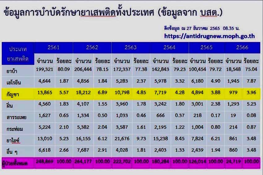 “นี่คือหนึ่งในสาเหตุที่แม้ราคายาบ้าซึ่งมีกำลังการผลิตมากขึ้น ต้นทุนถูกลง การขนส่งสะดวกขึ้น แต่การที่ผู้ที่เสพยาบ้าต้องเข้ารับการบำบัดลดลงอย่างมากถึงครึ่งหนึ่งนั้น สะท้อนให้เห็นว่าคนเสพยาบ้าลดลงด้วยอย่างแน่นอน จึงเป็นผลทำให้ยาบ้าซึ่งเคยมีราคาขายเม็ดละ 100-300 บาท ปัจจุบันมีราคาเพียง 10-30 บาทเท่านั้น และถ้ามองการบำบัดสารเสพติดหรือสารออกฤทธิ์ทางจิตประสาทโดยรวม อันได้แก่ ยาบ้า เฮโรอีน กัญชา ฝิ่น ยาไอซ์ สารระเหย กระท่อม ฯลฯ พบว่าเมื่อปี พ.ศ. 2562 นั้นมีประชากรที่เข้ารับการบำบัดทั้งสิ้น 265,177 คน แต่เมื่อสิ้นปีงบประมาณ 2565 ปรากฏว่ามีผู้เข้ารับการบำบัดยาเสพติดทุกประเภทเหลือเพียง 126,014 คน หรือลดลงไปเมื่อเทียบกับปี 2562 มากถึง 138,163 คน หรือลดลงไปกว่าครึ่งหนึ่งเช่นกัน คิดเป็นร้อยละ 52.23 คน” นายปานเทพ กล่าว