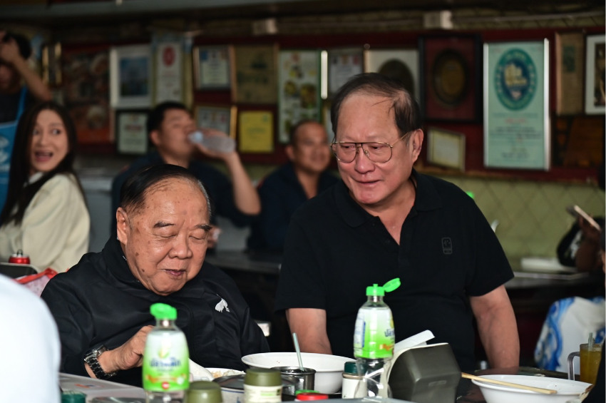 ‘พล.อ.ประวิตร’ ควง ‘พล.อ.ธรรมรักษ์’ กินก๋วยเตี๋ยวเนื้อร้าน ‘วัฒนาพานิช’ ถูกใจฉายา ‘ลุงป้อมชวนชิม’