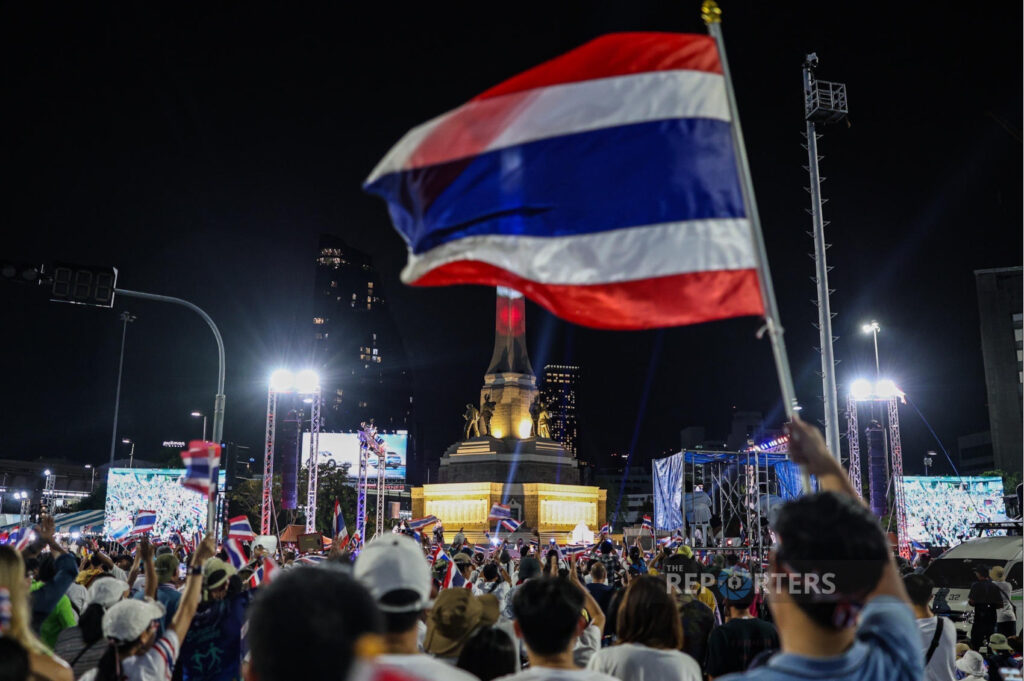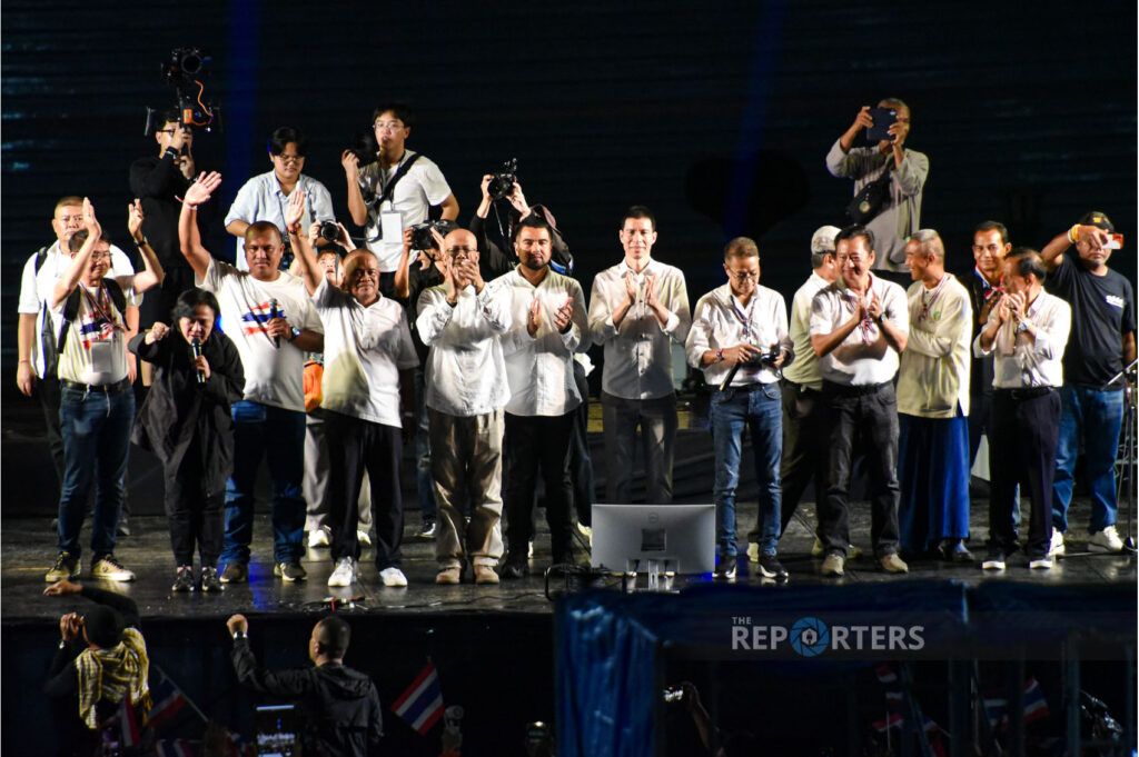 The Reporters ประมวลภาพการชุมนุมของกลุ่มรวมพลังแผ่นดินปกป้องอธิปไตย เพื่อเรียกร้องให้ยางสาวแพทองธาร ชินวัตร นายกรัฐมนตรี ลาออกจากตำแหน่ง ที่อนุสาวรีย์ชัยสมรภูมิ
