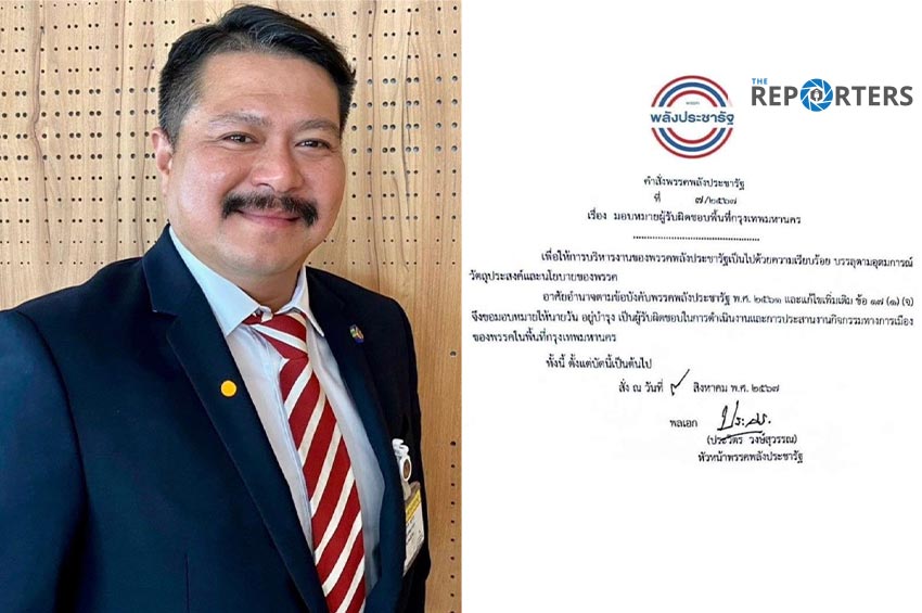 จึงขอมอบหมายให้นายวัน อยู่บำรุง เป็นผู้รับผู้รับผิดขอบในการดำเนินงานและการประสานงานกิจกรรมทางการเมืองของพรรคในพื้นที่กรุงเทพมหานคร